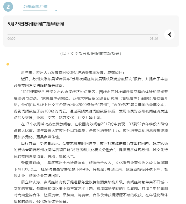 报告一经发表,引起了苏州各大媒体的关注。名城苏州网、苏州新闻广播、看苏州等平台先后采访了调研团队,同学们的调研成果也得到了相关部门的充分肯定。