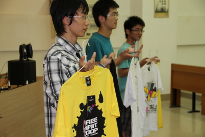 由赞助商提供的拍品主要有宿舍杯、乐器手链、T恤等。由于有较多的组合装,适合与朋友共有,所以也受到了同学们的追捧。有一样拍品是6件男生T恤,一件30元,加价一元就等于加了6元。当同学们都一件1元1元加,一个声音喊出“45”,现场顿时炸开了锅,纷纷寻找着声音的来源。结果当然毫无悬念,“45”一锤定音。