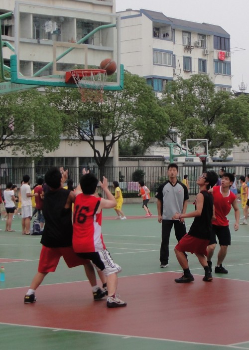 7月2日下午四点,东校区篮球场上进行了一场别开生面的篮球赛,我院团委书记李季老师和团委副书记