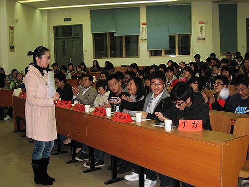 首先,主持人宣读了各队的基准分,此分数是根据各队完成任务所用时间和最终人数所决定的,10CGA以 28分遥遥领先。随后便是各队的风采展示,即团干上台自我介绍。其中会计队的口号“BIG BANG,让你们震撼”和CGA队的“挑战权威,风华正茂,舍我其谁”都让人印象深刻。