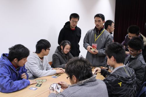 三国杀作为近年来颇为流行的一款桌面游戏受到了大学生的广泛喜爱,奕风棋社顺应潮流,举办了此次三国杀比赛,一方面旨在锻炼大学生思维能力、团队协作能力,同时又给予大学生放松自我的机会。此次挑战赛分为晋级赛、淘汰赛和循环赛。比赛分为6组,先由其中的12组参赛队伍进行抽签进行晋级赛,胜出6组,再进行淘汰赛,决出3支优胜的班级团队。最后是积分制的循环赛,3组班级间互相进行比赛,赢一局计两分,平一局计一分,输的不计分,最后累计积分,积分最高者赢得第一。经过紧张的角逐后,08CGA技压群雄,荣获第一名,08金融班获得了第二名,09国贸班获得了第三名。