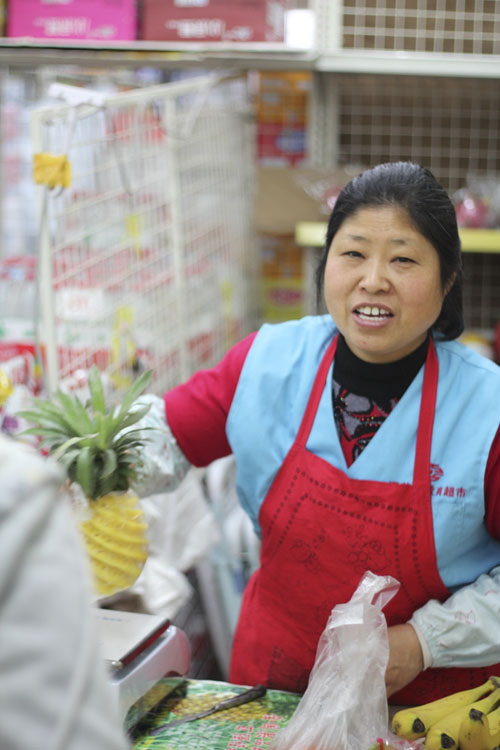 来到阿姨的水果摊前,正碰上阿姨在忙,当我们向阿姨表明来意的时候,她一下子不好意思起来,等阿姨忙完以后,笔者就和阿姨聊了起来。