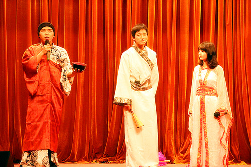 前半场表演成功地把场上气氛调动了起来,趁热打铁,节目组安排了互动环节“正话反说”,两名同学在比赛中胜出并获得精美礼品作为奖励。互动虽然短暂,但精彩仍在继续。清野动漫社的COSPLAY让人眼前一新,赢得阵阵喝彩;吴方言文化传播协会的评弹用声音带我们品苏州;精英营销协会的舞蹈诙谐幽默,让人捧腹大笑;苏艺馆的歌曲串烧用三种语言使我们领略摇滚的独特魅力。时间在节目变换中流逝,不知不觉晚会已接近尾声,一首由东吴商学院社联合唱的会歌《社联如家》唱出了每个社团人的心声,为晚会画上圆满句号。