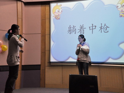 随着精心制作的幻灯片的播放结束,活动就此拉开序幕。首先进行的是相识相知环节,每组选手通过自己制作的幻灯片,来重现双方互相认识的场景,精彩的图片,幽默的解说词,尤其是第三组的M&C组合,在介绍对方时留下了煽情的泪水,让在场的观众也深深感动。第一个环节期间,特邀嘉宾曹依然同学为我们深情演唱了《生生世世爱》,将整场活动推向高潮,赢来阵阵掌声。接着是观众互动的游戏环节,不少观众得到了丰厚的奖品。观众互动结束,比拼选手默契的游戏环节正式开始。此环节包括三个游戏,分别是你来形容我来猜、比默契、图片大联想三个部分,游戏中选手充分发挥着自己的想象力和创造力,带给观众无限乐趣。在令人期待的第三环节――才艺大比拼中,各位选手大显身手,说、唱、跳无所不能,给观众送上了一份视觉大餐。最终第一组合以60分总分位居第三,第三组合M&C和第四组合you and me以总分80分的成绩并列第一,获得冠军。