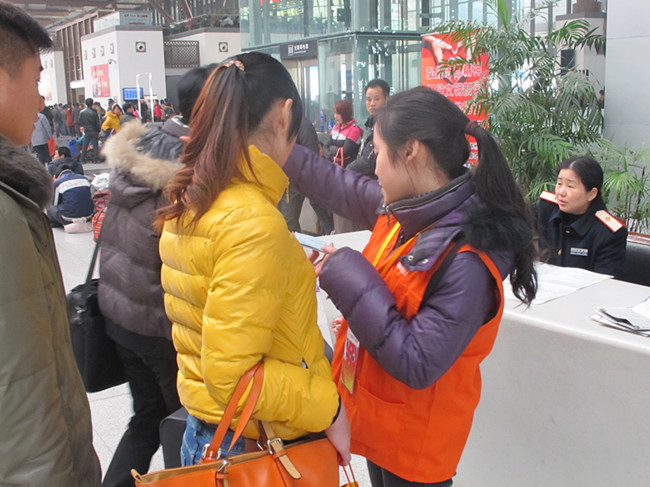 火车站候车大厅空旷透风,冬天更加显得寒冷,但是温暖在旅客间流动,志愿者们就像一簇簇橙色的火苗,让每一位从苏州出发的旅客都带着一份安心与从容踏上回家之路,让每个旅客回家的旅程都成为一趟暖心和谐之旅。