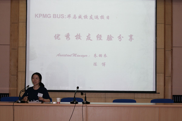 随后,我院毕业生、毕马威B-TWO朱羽衣和陈博分享了自己的毕业与求职经历以及公司的工作情况,通过他们的介绍,14届的同学们对四大会计事务所的工作有了更深入全面的了解。