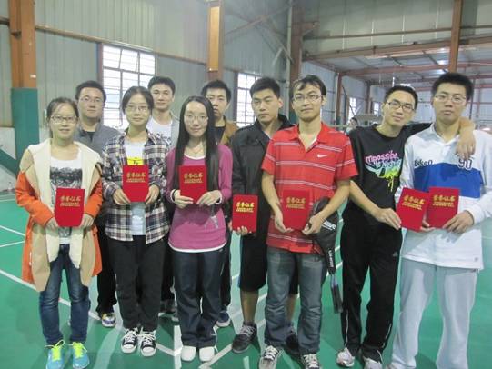 高手对峙,比分交替上升,两旁的观众时而赞许,时而屏住呼吸,都不敢打扰自己的选手,花落谁家谁先知?所有的选手都在期待着……经过激烈的角逐,最终各个项目各有三个小组胜出,分别获得冠军、亚军、季军称号。其中毛寓阳、吴举成同学获得男双冠军,胥茜娅、王睿同学获得女双冠军,金娇、毛寓阳同学获得男女混双冠军。