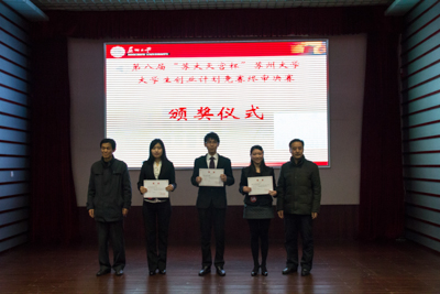 最后由主持人宣布得奖队伍:东吴商学院团委、物理与光电・能源学部团委以及服装与纺织工程学院团委获得优秀组织奖;苏州优格盛世传媒有限公司、星韵科技有限公司、苏州瑞康医疗科技有限公司、苏州纳诺尼特科技有限公司、苏州光凌太阳能科技有限公司、苏州洁康义齿科技有限公司以及苏州三衣无水整染有限公司获得一等奖;苏州友迪软件科技有限公司、苏州格瑞膜材料科技有限公司以及苏州华祥嵌入式科技有限公司获得特等奖。