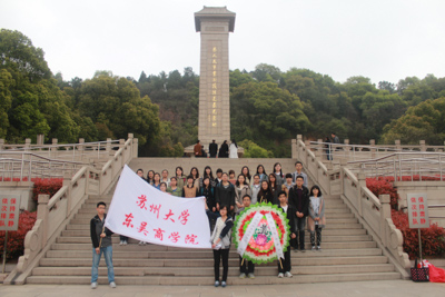 4月2号星期三,东吴商学院团委青年政校组织了清明节扫墓,四十余人参加了此次活动。为响应习近平主席提出的勤俭节约的美德,下午一点多全体成员从学校出发搭乘公交车,前往苏州烈士陵园。