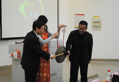 开幕式将近尾声,唐书记和赵旗荣先生手持棒槌敲响了开幕式激动人心的锣鼓。就在大家以为活动正式结束之时,付强先生笑意盈盈地走上台,对刚刚专业股票知识的讲解进行了一个“小测验”,在精美小礼品的“刺激”下,同学们踊跃发言,现场气氛再次进入高潮。