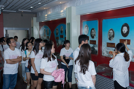 下午,我们走近鲁迅故居。鲁迅是浙江绍兴人,是著名的文学家、思想家、民主战士、五四新文化运动的重要参与者、中国现代文学的奠基人。毛泽东曾评价:“鲁迅的方向,就是中华民族新文化的方向。”在这里,我们看到了中学课本学过的很多课文中所描述的场景,也看到了三味书屋、百草园等散文中常常出现的地点。鲁迅作为现代中国的民族魂,他的精神深刻影响着他的读者、研究者,以至一代又一代的中国现代作家、现代知识分子。看过他人生经历的种种,同学们对鲁迅先生肃然起敬。 7月14日,我们来到了余姚市四明山革命根据地参观学习。四明山革命根据地是全国十九个抗日根据地之一,1996年被国务院列为全国列建物保护单位。大家在讲解员的带领下首先参观了四明山革命纪念馆,这里陈列着69位不同历史时期的革命烈士照片和生平事迹介绍及925名革命烈士英名录。在这里,我们了解了浩气长存的陈忆姜同志和年仅18岁就壮烈牺牲的张继光同志及其他同志的英勇事迹,大家内心深受感动。在观看相公殿战斗和狮子山战斗的幻影成像演示后,我们被抗战时期革命先烈在环境恶劣、弹药不足等情况下仍坚持战斗并取得胜利的精神深深折服。随后师生们登上319级石阶,到达四明山革命烈士纪念碑脚下。纪念碑高18.5米,用花岗石砌成,碑正面题有“革命烈士永垂不朽”八个大字,气势雄伟。两位学生代表虔诚地为革命烈士献上花圈。在纪念碑下,大家一起合影留念,一起留下珍贵的回忆。 在漫长的革命战争年代,中国共产党领导领导来自五湖四海的革命志士,为了反对内外敌人,争取民族独立和人民解放进行了艰苦卓绝的英勇斗争,才有我们今天和平幸福的美好生活。作为社会主义事业的接班人,我们青年大学生应该铭记历史,勇挑重担,向革命先烈学习,为了祖国的繁荣富强贡献自己的力量!