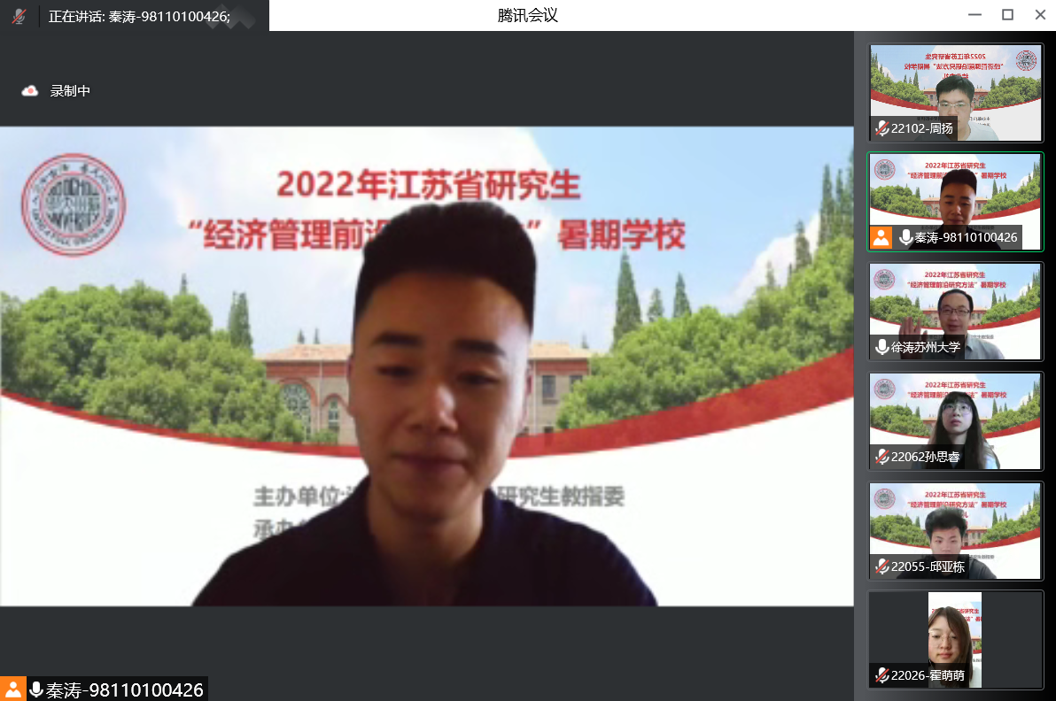 2022年江苏省研究生“经济管理前沿研究方法”暑期学校结业典礼顺利举行