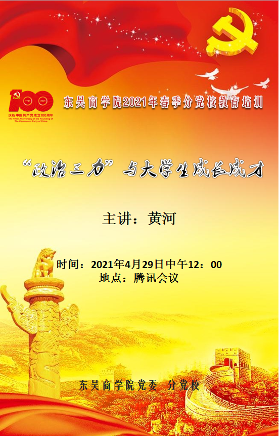 东吴商学院2021年春季分党校教育培训专题党课:“政治三力”与大学生成长成才