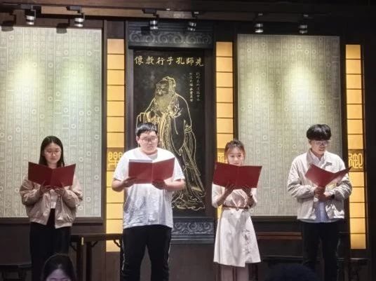 随后是读书分享环节。商学院本科生刘骐嘉、常曦文、陆奕璇和冯研带来朗诵《青春》。朗诵声情并茂,富有感染力,在场所有人不仅感受到青年的朝气蓬勃,也感受到时代的发展正是因为有了这群青年而未来可期。