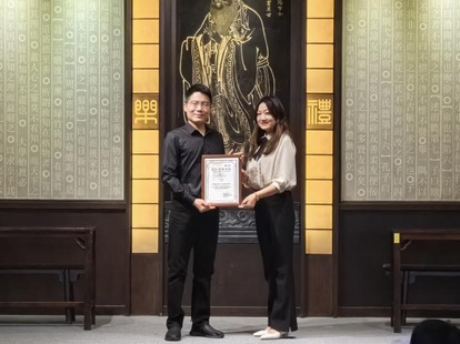 分享结束后,苏州碑刻博物馆副馆长纪迪和殷健社长为获奖学生代表(王滔寅、鲍辰恺、霍曼杏、王禹舟)颁发荣誉证书和奖品。苏州大学商学院团委孙正嘉老师为殷健社长颁发校外导师聘书。