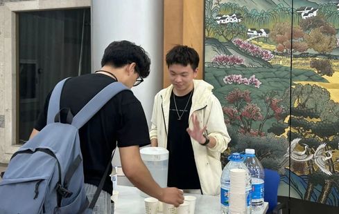 体检后,身体各项指标都合格的同学可在献血前到志愿者处领取一杯葡萄糖水补充能量。