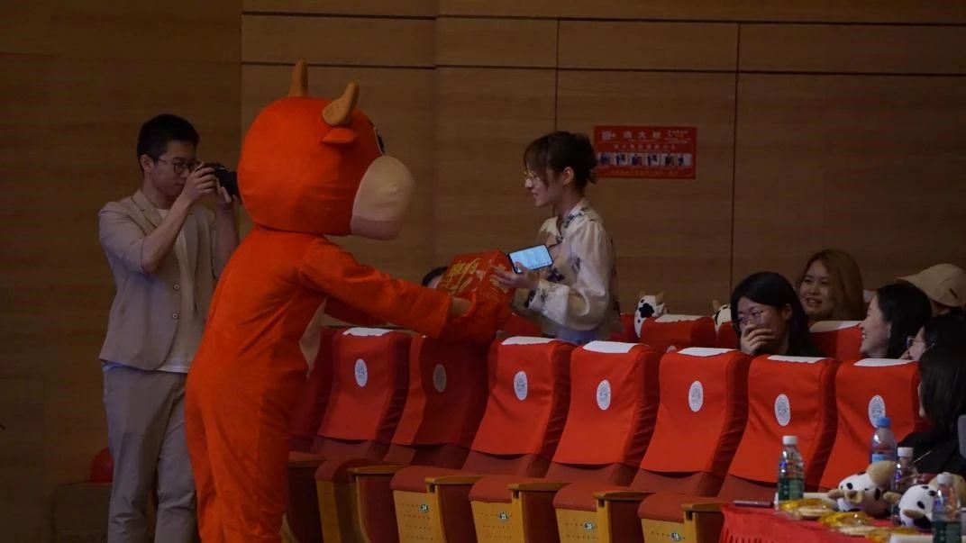 本场晚会共设三轮抽奖,每轮抽奖各三次。奖品包含智能手环、毛绒玩偶、花束礼盒、坚果大礼盒等,由可爱的吉祥物发放礼物,现场气氛热烈。