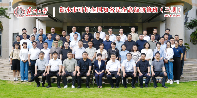 为快速适应当下经济发展新环境,促进民营经济做大、做优、做强,2024年6月3日至7日,由衡水市委统战部主办,苏州大学商学院承办的“衡水市对标全国知名民企高级研修班(三期)”于苏州大学天赐庄校区成功举办。衡水市委统战部、各区(县)委统战部、衡水市相关民营企业家参加此次培训,共计50余人。