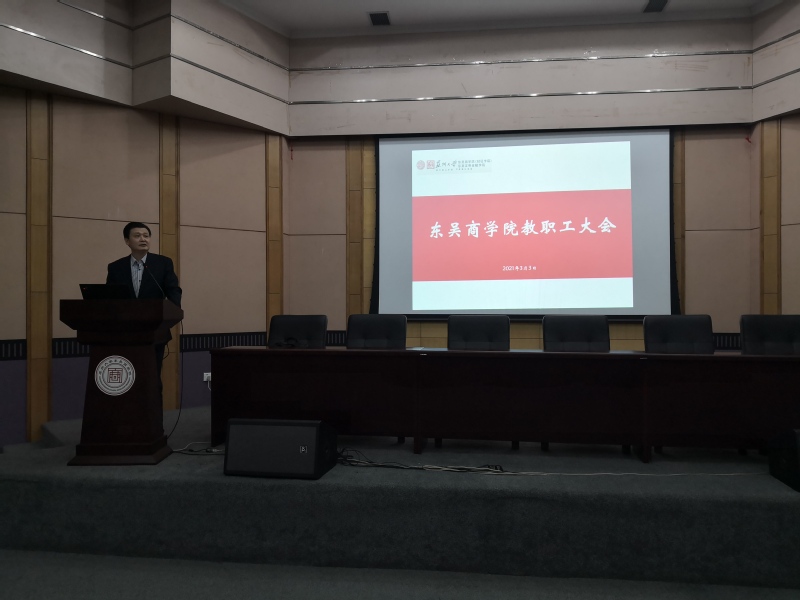 2021年3月3日下午,苏州大学东吴商学院在财科馆二楼学术报告厅召开2020-2021学年第二学期全院教职工大会。会议由刘志明书记主持,全院教职工参加本次会议。