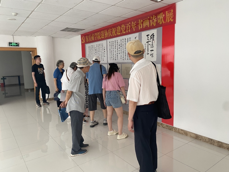 颁发仪式前,离退休老党员和同学们参观了庆祝建党百年商学院老同志书画诗歌展,在作品前驻足欣赏、合影留念,此次展出的书法作品是以庆祝建党百年为主题,作品构思精巧、风格多样、内容丰富,充分展现了创作者的才情智慧和艺术品格,展现了老同志们昂扬向上的精神风貌,充满了对中国共产党的热爱和对美好新时代新生活的热爱,非常值得学习。