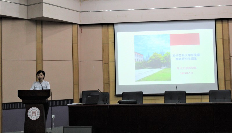 完成了现场互动环节之后,冯院长通过PPT的展示,使同学们全面认识了苏州大学东吴商学院研究生招生情况,她表示会在后续学习活动中,通过辅导员让更多渴望得到信息的同学有进一步的了解,从而更好地规划学业。