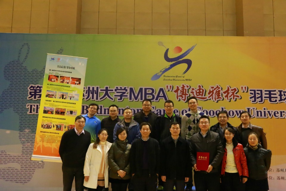 苏大MBA羽毛球精英赛是一项传统赛事,本届比赛更是受到了各班同学、老师、校友的大力支持,他们坚持“以球会友,友谊至上”精神,正是他们的积极参与赋予这项赛事更多的意义。苏大MBA羽毛球精英赛为MBA的精英们提供了切磋球技的舞台,也搭建了彼此交流的平台,相信通过更多此类的活动,各班级、师生、校友间的沟通和交流会越来越多,MBA的课余生活会越来越丰富,友谊也会越来越深厚。