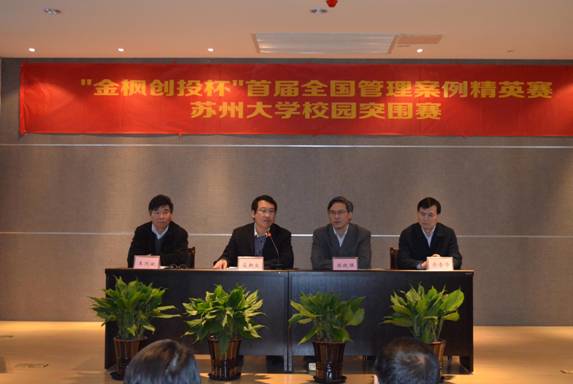 “金枫创投杯”首届全国管理案例精英赛苏州大学校园突围赛是东吴商学院MBA教育加强与外界交流,实施走出去战略的一次尝试,取得了圆满成功,学院将根据比赛结果,整合各参赛队伍,积极准备即将举办的区域赛和全国赛。