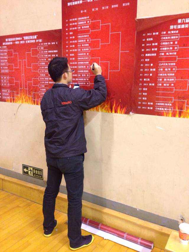 当然此次比赛的成功,离不开组委会全体成员的辛苦工作。11月14号晚上,连夜布置会场。一直等体育馆比赛和训练完毕后才开始布置。 来不及更换工作服的文泉