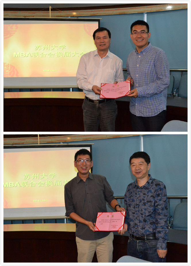 2015年10月17日下午,苏州大学MBA联合会换届选举大会在财经科学馆317会议室隆重举行。院长助理、MBA中心主任俞雪华副教授;MBA中心副主任、企业案例研究中心主任魏文斌教授;MBA中心胡勇老师;校友代表,第四届MBA联合会主席胡涛;第五届MBA联合会秘书长徐刚,以及现任MBA联合会骨干和在读各班班级代表参加了此次会议。会议由第六届MBA联合会秘书长杜林芳同学主持。