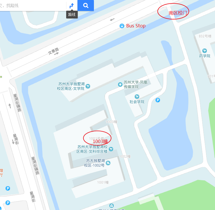 提示:1、独墅湖校区1003幢在传媒学院南侧的文科综合楼,从文景路校门进入较近(见图示),持MBA学员停车证可开车进入独墅湖校区。