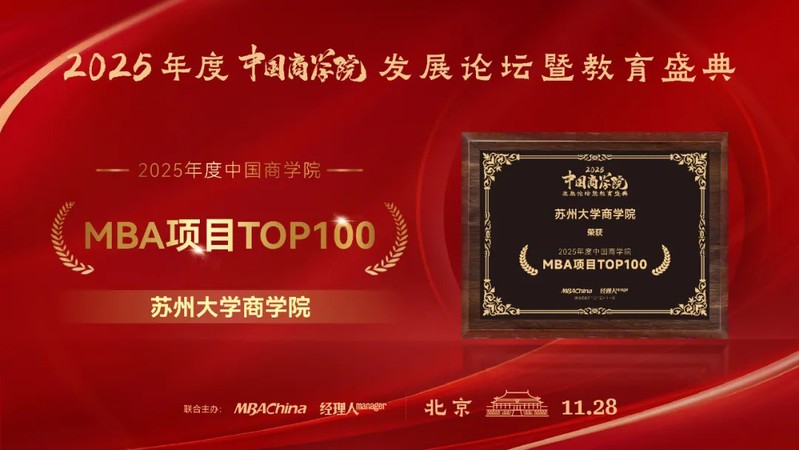 Great News! Soochow University School of Business Secures Multiple Honors Including “2025 China's Top 100 MBA Programs”