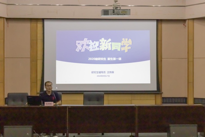 新生第一课的第二部分由辅导员沈炜策老师对商学院研究生日常工作进行了简单介绍并且对研究生新生做了安全教育。其中包括商学院研究生办公室的职责、各科室的主管工作、日常事项的办理途径以及校内常用网站的用途等。此外,针对同学们近期提出的常见问题,沈老师也都耐心地进行了解答。
