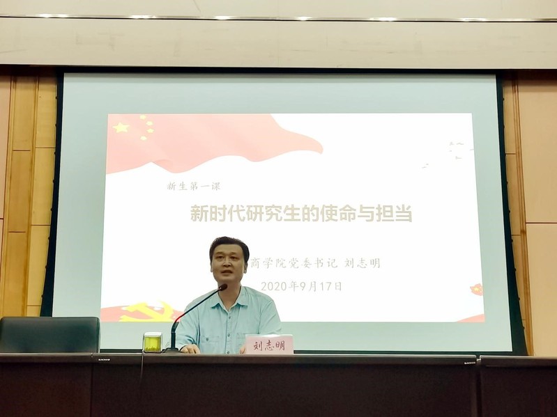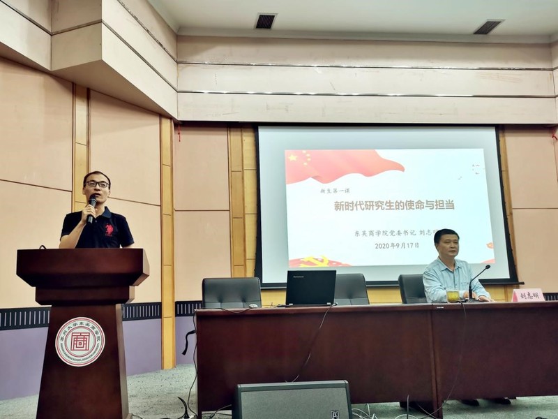 2020年9月17日下午一点半,苏州大学东吴商学院2020级研究生新生第一课在东吴商学院财经科学馆学术报告厅隆重举行。我院党委书记刘志明老师、研究生辅导员沈炜策老师、研究生教务秘书章永红、蒋希哲老师出席了会议。本次会议由沈炜策老师主持。