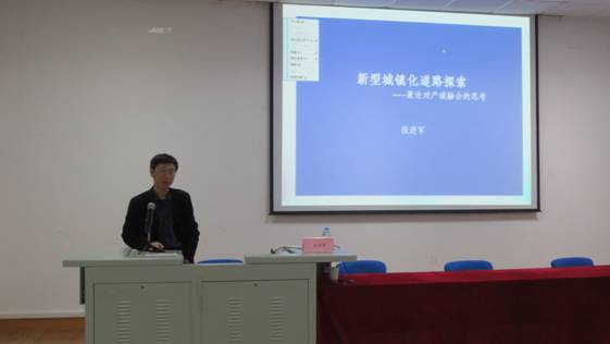 另外为了响应党的十八大号召,段教授将中国梦与科学建设和学术研究相结合,就城镇化问题与同学们进行了探讨。中国在改革开放30年时间当中,城市空间扩大了二三倍,城镇化率也达到了52.6%。但是,空间城市化并没有相应产生人口城市化。中国有2.6亿农民工,户籍问题把他们挡在了享受城市化成果之外,是否能真正实现城镇化成为一个现实并且亟待解决的问题。段老师向同学们介绍了新型城镇化的概念,结合丰富的图片、视频以及贴近生活的例子,分析了我国目前在城镇化方面存在的问题,并且提出了相应的解决对策和方案。