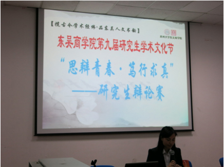 2013年5月9日晚6:30,由东吴商学院研究生分会举办的“思辩青春·笃行求真”——研究生辩论赛在东吴商学院财经科学馆105室顺利举行,东吴商学院2012级同学参与了此次辩论赛。东吴商学院贸经系主任王俊老师、苏州大学研究生会副主席宋虎同学及陶静媛同学、东吴商学院研究生分会主席杨慧同学、副主席沈正同学则应邀担任了此次辩论赛的评委。