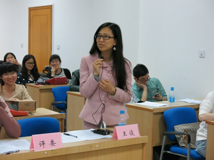 辩论赛现场气氛活跃,选手语言流畅,富于感染力,他们的精彩发言博得了观众的阵阵喝彩。随后是观众互动环节,场下的观众纷纷就辩题涉及到的问题向场上的辩手进行提问,双方辩手分别就所提问题给予恰当的回答。评委点评环节中,王俊老师为本场辩论赛做了详细而又精彩的点评。她首先表扬了选手们的激情不断、慷慨陈词、仪表大方、陈述清晰,接着王老师就分析了本次辩论赛辩题的选取方向,并对于主办方借举办辩论赛之机繁荣校园思辨文化、提升研究生专业素养的初衷给予了高度的赞扬。王俊老师的妙语连珠的点评使辩手们与在场的观众获益匪浅。