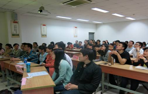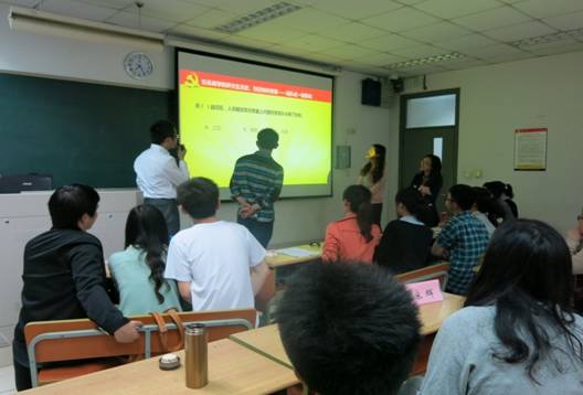 5月16日,由东吴商学院研究生分会和研究生党支部合办的“笑傲擂台,一站到底”——党史、财经知识竞赛在苏州大学东校区东教楼104顺利举办,本次活动以专业组队,参加本次活动的分别是1号队——来自管理专硕的刘艳、时辰龙、郁春琴;2号队,来自经济学硕的胡玮、施耀、张彬琳;3号队,来自管理学硕的安伟、金盼、王名翔;4号队,来自经济专硕的张惜君、蒋枫、刘兆框。本次活动也得到了商学院研究生工作助理、研究生党支部书记宋辉老师的支持。6:30活动正式开始,在主持人精炼的开场后,宋老师表达他对本次活动意义的肯定,并且希望党员同学能做好先锋模范的带头作用,与团员同学共同交流、共同学习,之后知识竞赛在同学们热烈的期盼和掌声中拉开了帷幕。