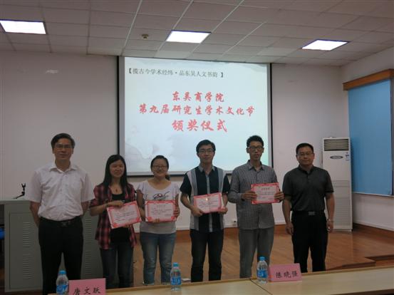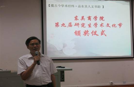 2013年6月4日晚,由苏州大学东吴商学院研究生会主办的第九届学术文化节闭幕式暨毕业研究生经验交流会在财经科学馆105隆重举行。东吴商学院院党委书记陈晓强老师、党委副书记唐文跃老师、研究生工作助理宋辉老师、往届及应届毕业生代表,以及广大研究生同学参与了本次活动。