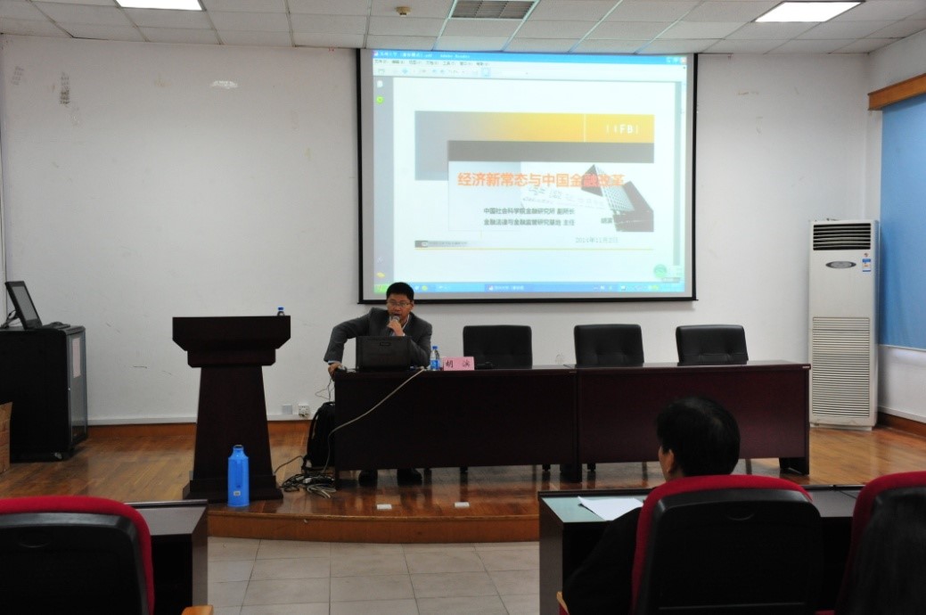 2014年11月2日上午8时,苏州大学东吴商学院学术报告,系2015年国家社科基金申报系列活动之一——关于当前中国金融政策与发展若干热点问题的讲座在东吴商学院财科馆105室顺利举行。本次报告有幸邀请到了胡滨博士作为主讲嘉宾,胡滨老师(法学博士、研究员、博士生导师)现任中国社会科学院博士后管理委员会秘书长、中国社会科学院金融研究所副所长、中国社会科学院金融法律与金融监管研究基地主任。东吴商学院2014级研究生同学积极参与了本次讲座。此次讲座旨在分析当下经济新常态与金融改革等热点问题,帮助广大研究生及时了解及掌握我国经济改革与发展的新政策、新思路,开阔同学们的研究视野,为论文的选题拓展新思路。