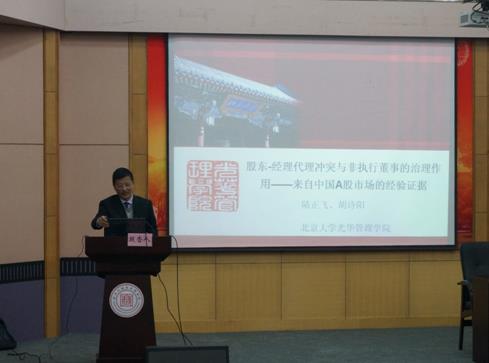 开幕式结束后,大会分别邀请了北京大学教授陆正飞、对外经济贸易大学教授汤谷良和浙江工商大学副教授马文超作大会主旨演讲。三位专家学者分别作了题为“股东-经理代理冲突与非执行董事的治理作用”、“大数据背景下企业财务管理的挑战与变革”、“‘潮涌现象’对信贷政策的影响——来自行业企业债务融资的证据”的报告。下午,与会的各位专家学者按照讨论主题分成两组进行交流讨论。九位专家学者分别发表论文观点,与参会专家进行多角度对话和探索。讨论会结束后,四川大学教授干胜道、苏州大学教授周中胜、石河子大学教授杨兴全分别作了题为“企业财务分配公平思考”、“宏观经济环境、内部控制质量与企业资本投资”和“产业政策、行业成长性与公司现金持有”的报告。整个学术报告会“选题很广泛、方法很多样、成果很丰富、评论很到位、方向很明确”。