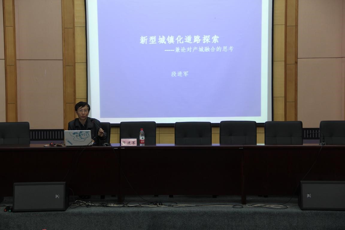 段老师首先对我国城镇化的现状进行了阐述,指出我国城镇化存在着明显的“大跃进”态势。我国的大规模城镇化过程超出了正常的发展轨迹,是一种“急速城镇化”。“土地城镇化”速度太快,城市建设用地迅速大规模扩张,其幅度甚至大大超过比我国更有条件发展城镇化的发达国家。各地方俨然将城镇化发展进度作为衡量政府政绩的标准,各地提出了诸如“大沈阳”、“大昆明”的口号。接下来段老师通过大量真实的图片向我们展示了中国各地扭曲的城镇化“成果”,并将其与西方更加务实的城镇化进程进行对比,指出了我国城镇化“大跃进”的风险和危害。我国城镇化速度“虚高”,对城镇就业安置、基础设施和和生活质量等造成了很大的压力,制造出了大量的失地农民,严重搅乱了土地市场秩序,造成了资源浪费和环境污染。最后,段老师提出了针对我国城镇化现状的政策和措施建议。指出应基于我国国情基础构建城镇化发展的空间模式,遵循循序渐进的原则,制定和实施合理的城镇化发展指标,同时制定符合科学发展观的各级政府官员政绩考核指标体系。使城镇化建设的理论与中国具体实际结合,走可持续的科学发展道路。
