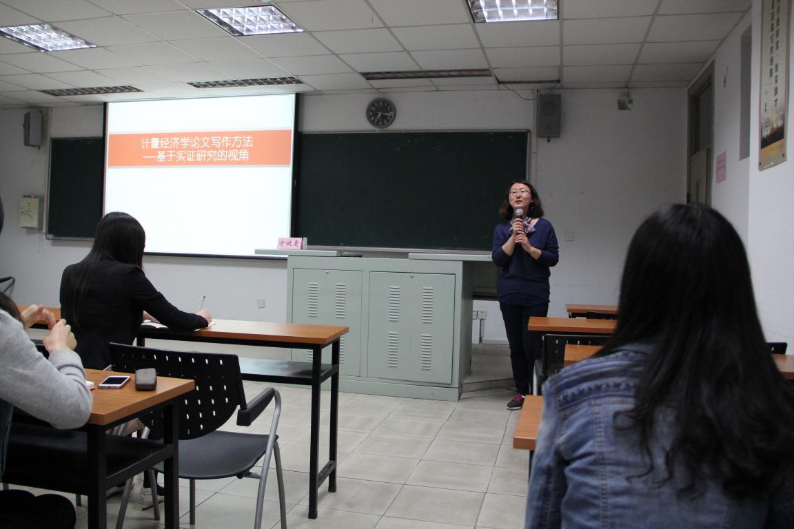 方老师首先从选题出发,阐述了选题的重要性以及选题的途径,从研究问题的重要性与可行性以及文献查找方面清楚地讲述了如何选题。此后,方老师重点讲述了实证论文写作过程中计量方法和模型的选择以及变量与数据的处理。方老师指出计量方法的选择不在于其复杂程度,若基本的OLS方法能够得出相应结果,则不必大费周章选用复杂的计量方法。分位数回归、分层回归等复杂计量方法的使用需在文章中做出说明。模型的选择可结合实际情况,尝试不同的函数形式找出最佳模型,变量的选择不要一步到位,保留重要变量的基础上逐步加入新变,以此提升模型的准确性,同时前期的数据处理要有一定的冗余度以便于后期变量的选择。接下来,方老师高度概括了实证论文写作的整体框架,主要包括摘要、引言、文献综述、模型设定、数据与计量方法说明、实证结果报告、结论与政策建议以及最后的参考文献等。之后,方老师详细讲述了每一部分的要点内容,其中主要说明了文献综述的写作方法,强调了实证模型中变量符号的理论解释以及实证结果的报告形式。最后,方老师就平时写作,给我们提出了几点注意事项,同时针对论文投稿问题也做了相关说明。