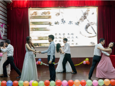 一曲唱罢,舞蹈又起,在蔡文莹和朱晗同学深情对唱《爱的华尔兹》的歌声中,三对舞伴在舞台上翩翩起舞。歌声深情浪漫,舞蹈默契优雅,男生西装笔挺尽显绅士风范,女生群袂飞扬舞出优雅端庄,举手投足尽显迷人魅力。华尔兹的旋律还没散去,《但愿人长久》的曲调又飘然而至,于申珅和陈煜雯同学带来的这首合唱千回百转情真意切。“但愿人长久,千里共婵娟”,歌美景美人更美,东吴商学院2015级研究生迎新晚会至此也接近尾声。