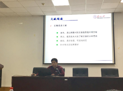 随后,王义忠同学主要就论文写作前期的文献阅读方法和数据搜集方法进行了详细讲解。王义忠同学认为在阅读文献前期,需全篇阅读,精读细读,需用兴趣带动积极性,强调细节是创新的来源;在阅读文献中后期,可通过摘要与图表来判断是否为所需的相关文献,并通读全文;在数据收集方面,多参照权威网站,例如中国统计年鉴库、人大经济论坛。