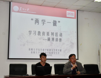 2016年11月16日晚7时,东吴商学院研究生党支部“两学一做”学习教育之硕博讲座在财经科学馆105室顺利举行。本次讲座邀请了三位研究生党员,16级企业管理硕士研究生王义忠同学、15级企业管理硕士研究生杭叶同学以及15级企业管理博士研究生周晶晶同学分享其论文写作以及在核刊投稿并顺利发表的心得,讲座由伏威威同学主持,学院党委干事缪爱国老师、15、16级全体学术硕士、16级研会新成员、全体研究生党员参加活动。