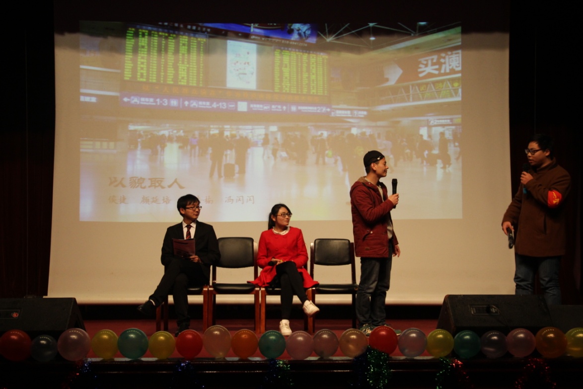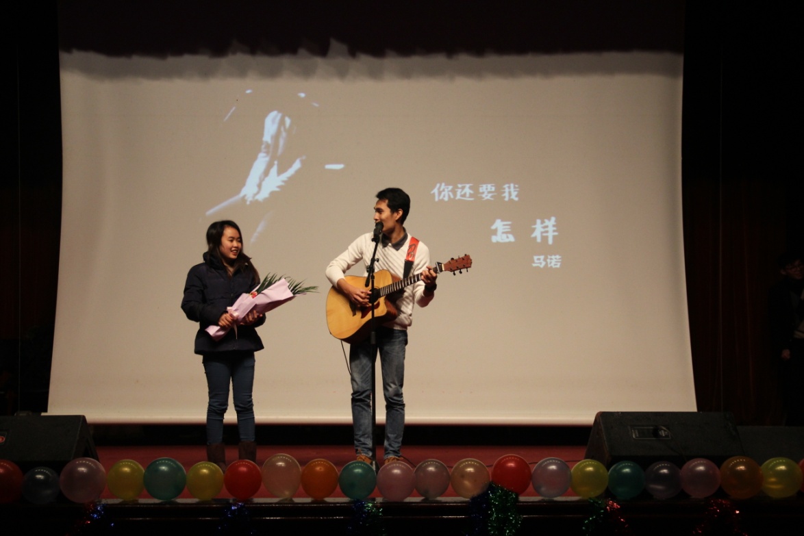 《风吹麦浪》是由商学院和机电工程学院合作的情歌对唱,浅唱低吟,青春洋溢。金融工程研究中心带来的《喜剧之王》颇具深意,让人不禁想起周星驰的名作《喜剧之王》。在机电工程学院、金融工程研究中心共同演绎的歌曲串烧《第二人生》中,元旦晚会三院联谊画上了圆满句号。
