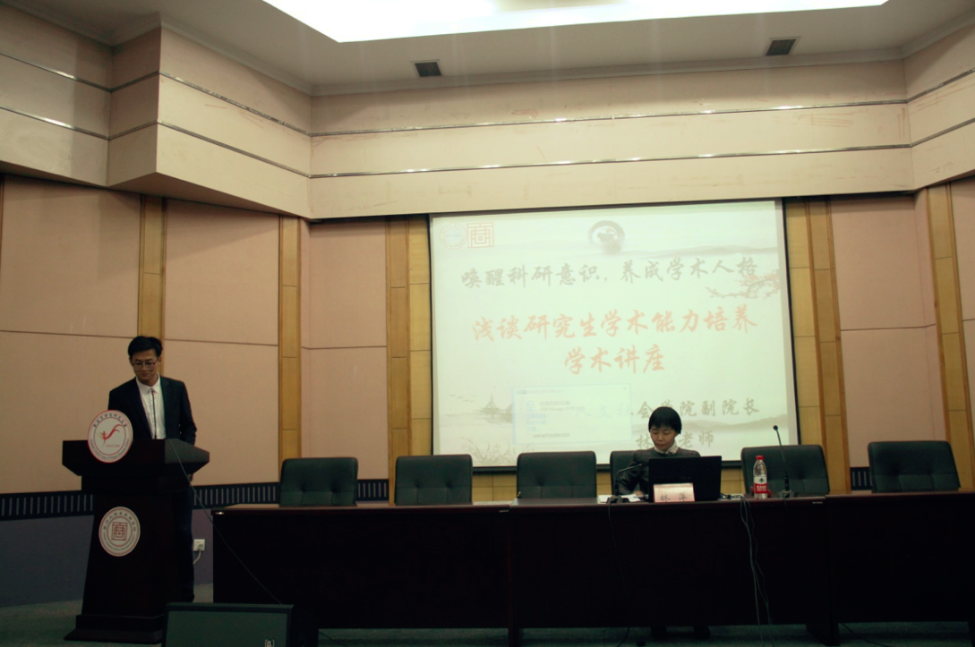 2017年4月12日晚上7点整,苏州大学东吴商学院“唤醒科研意识 养成学术人格——浅谈研究生学术能力培养”学术讲座在财科馆二楼学术报告厅准时开始。本次讲座邀请到的嘉宾是苏州大学人文社会科学院副院长林萍老师。东吴商学院2015级和2016级研究生同学参与了本次讲座。此次讲座旨在探讨当下研究生应该是一种什么样的状态,研究的意义是什么,又该如何研究,帮助研究生同学更加深刻地认识研究生的应有之义与本职工作,更好地给自己定位,明确自己的方向,把握当下研究生生活。