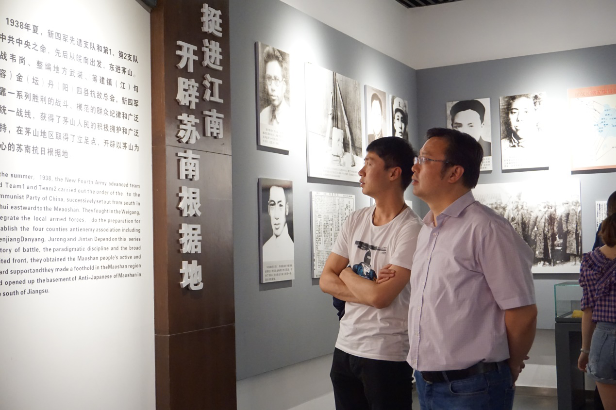 到达纪念馆,同学们重温了入党誓词,随后参观新四军历史展览馆。展览馆主要分为“苏南人民奋起抗击日本侵略军”、“茅山抗日根据地的开辟”、 “茅山新四军东进北上”、 “苏南抗日根据地的艰苦坚持”、 “苏南人民夺取抗日斗争的胜利”五大部分,整个陈列史料翔实、形式多样、内容丰富,真实生动地反映了以茅山为中心的苏南抗日根据地的光辉历程,大家都为此深深触动。那一刻,大家不仅看到陈毅、粟裕等老一辈无产阶级革命家的光辉形象,也切身感受到当年新四军以及苏南人民浴血奋战的悲壮。也在那一刻,同学们更加体会到今天和平的不易,更加珍惜今天和平美好的生活。