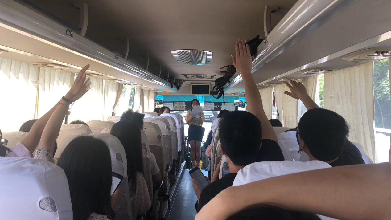 路途中开展了党史知识竞答,同学们积极参与、踊跃回答,气氛活跃。第二季度发展为党员的两位研究生会部长丁露露同志和张雯同志向大家汇报了近期的学习工作状况,得到了大家的肯定。