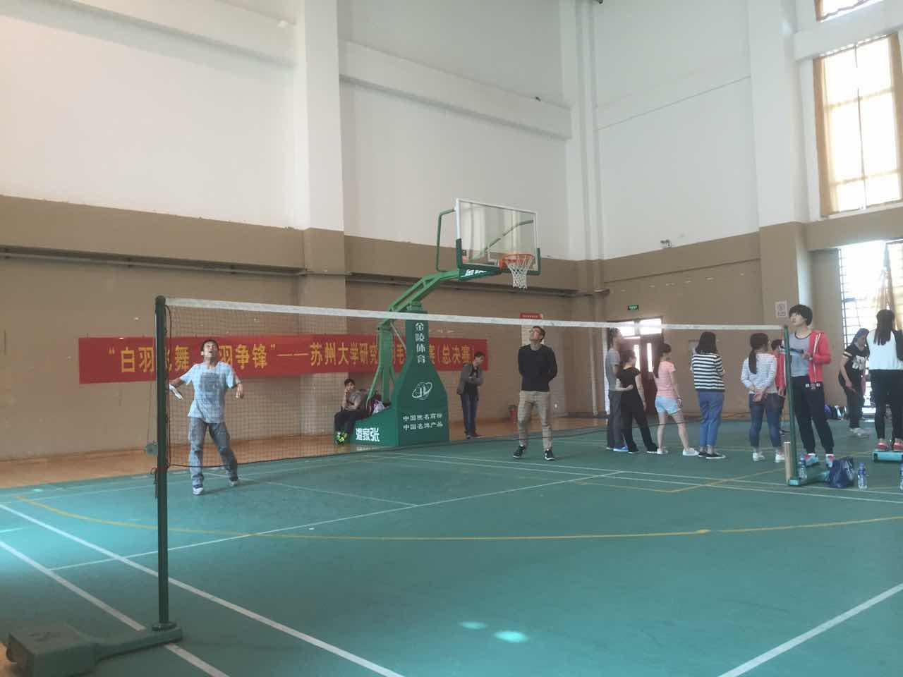 2015年5月10日,我院羽毛球队参加了由苏州大学研究生会主办的苏州大学研究生羽毛球赛总决赛,经过艰苦卓绝的努力,获得了苏州大学羽毛球赛第四名的好成绩。